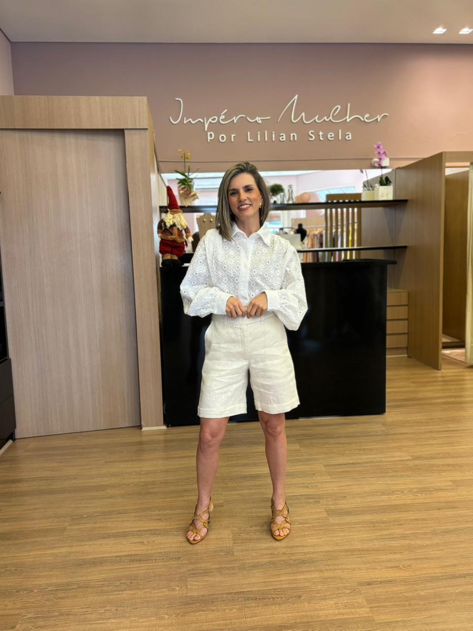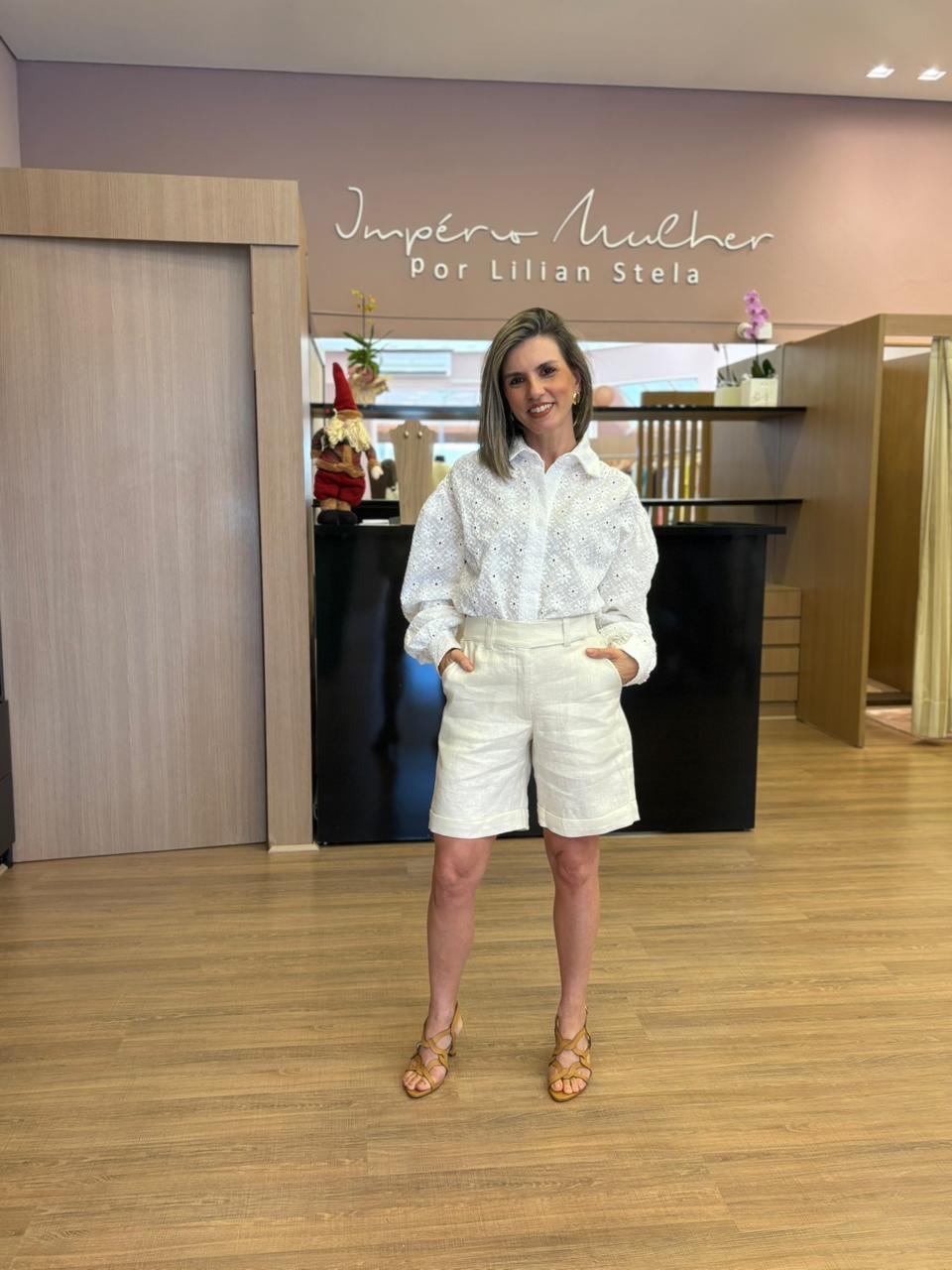 Seu tom off-white traz leveza e sofisticação, facilitando combinações com camisas, blusas em renda ou tecidos leves. Perfeita para produções modernas, casuais elegantes ou propostas mais refinadas para o dia a dia e ocasiões especiais.