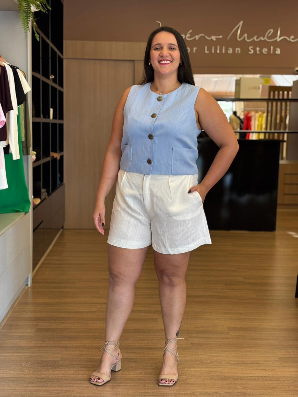 Short feminino em estilo alfaiataria, desenvolvido para unir elegância e conforto no dia a dia.