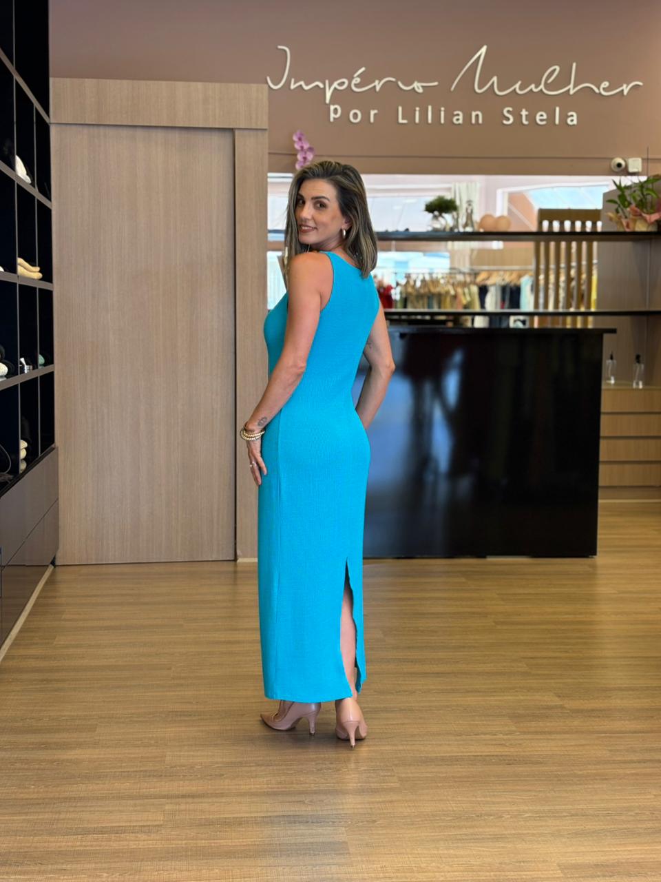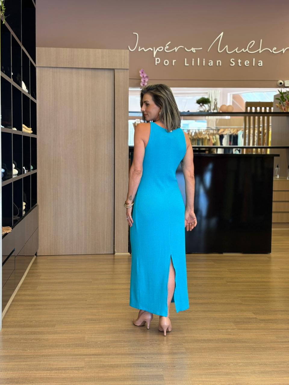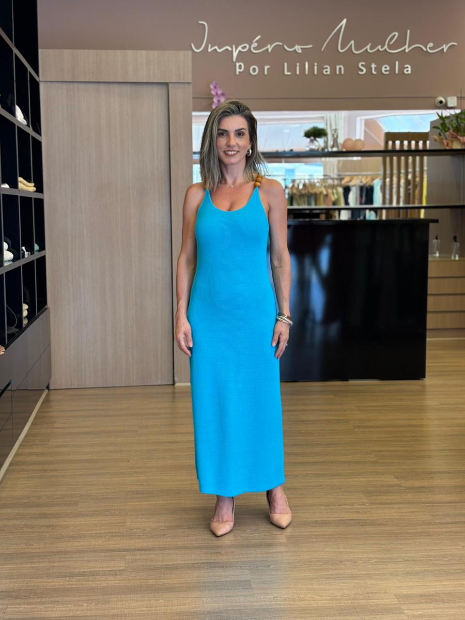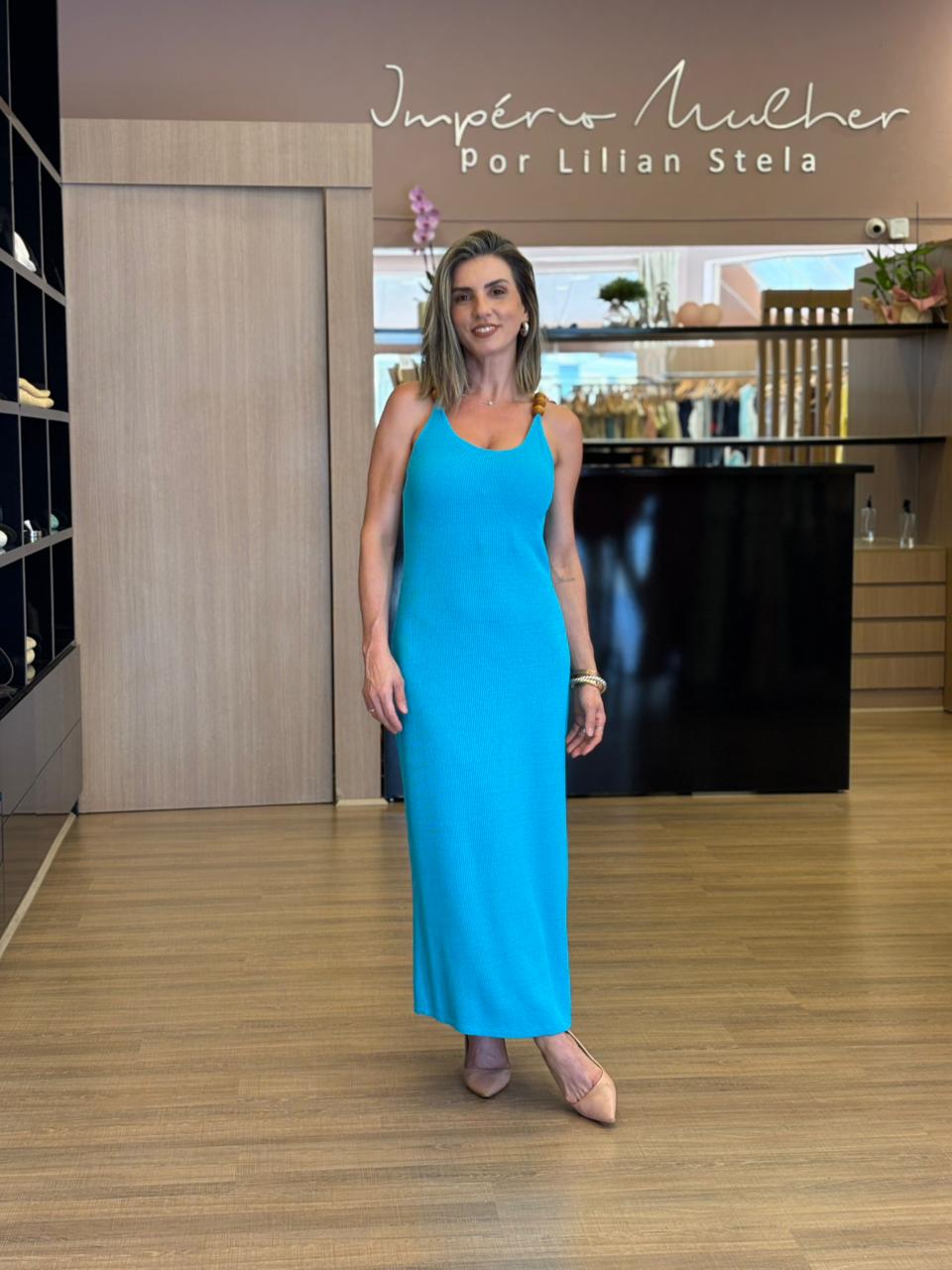 Vestido longo, leve e confortável.