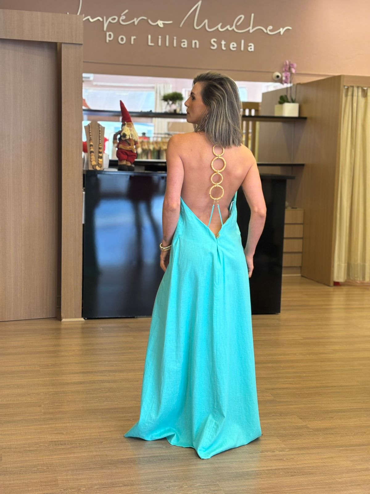 Possui modelagem fluida com ótimo caimento e detalhe diferenciado nas costas, com abertura elegante e argolas metálicas. O tecido natural garante conforto e frescor, tornando a peça ideal para diversas ocasiões, do casual ao mais refinado.